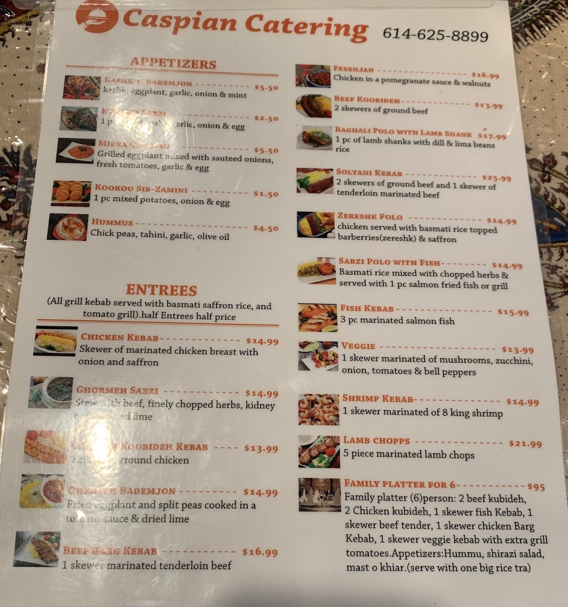 Welcome to Caspian Kabob & Grill, where authentic Persian flavors meet warm hospitality in the heart of Columbus, Ohio. Located at 2864 N High St, this culinary gem specializes in luscious kebabs and traditional dishes that transport you straight to Persia.