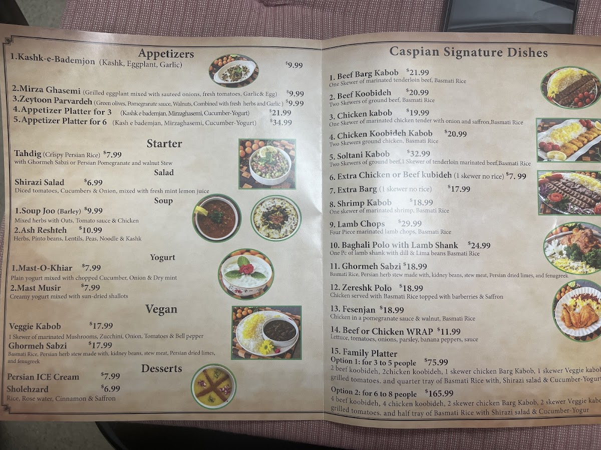 The friendly staff makes every visit memorable, embodying Iran's famous hospitality. Caspian Kabob & Grill is not just a meal; it's an experience beckoning you back for more!